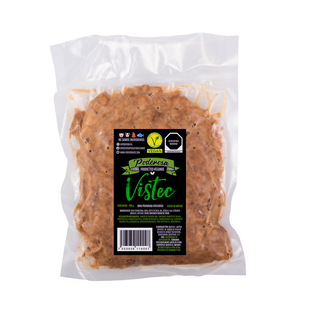 Proteína de soya condimentada con salsas y ajos. Nuestro producto estrella! Listo para calentar y servir.